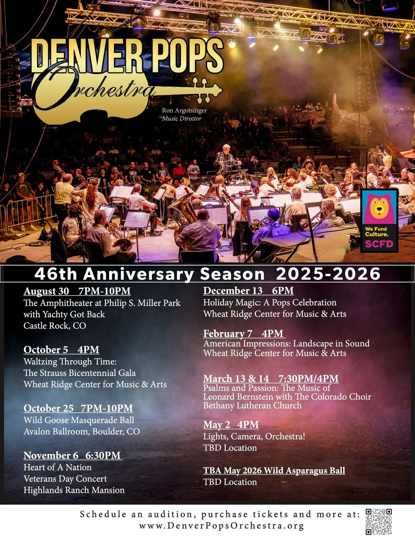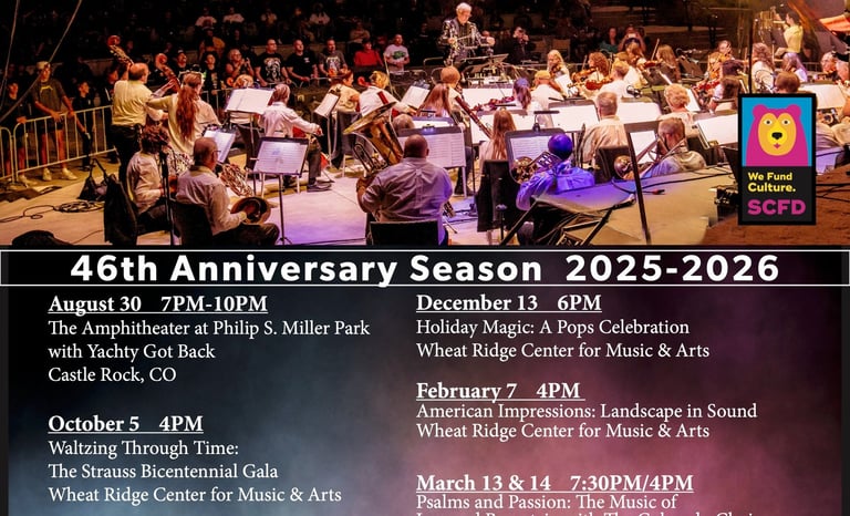 From the majesty of the Rockies to the sun-soaked deserts of the Southwest, the Denver Pops Orchestra invites you on a musical journey across America’s wide-open landscapes. Experience the sweeping grandeur of Jerry Brubaker’s Rocky Mountain Majesty, the rustic charm of Leroy Anderson’s Horse and Buggy and Chicken Reel, and the vibrant colors of Mary Mixter’s contemporary tone poem Southwest Impressions.