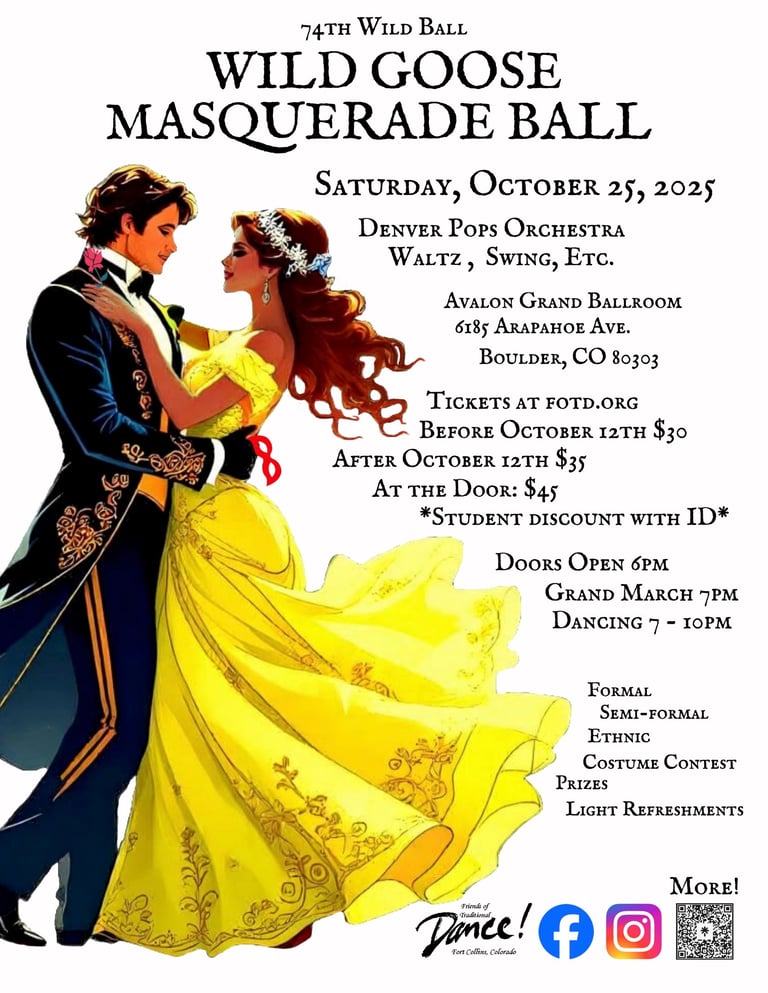 Attend an evening of elegance, mystery, and exhilarating music at the 74th Wild Goose Masquerade Ball! The Denver Pops Orchestra will sweep you off your feet with a dazzling mix of waltzes, swing, and more, filling the Avalon Grand Ballroom with a lush, vibrant soundscape perfect for dancing the night away. Don your most stunning formal, semi-formal, or ethnic attire, conceal your identity behind a mask, and join in the costume contest for a chance to win prizes. With light refreshments, an atmosphere charged with anticipation, and music that will keep your heart racing, this is one autumn evening you won’t want to miss!