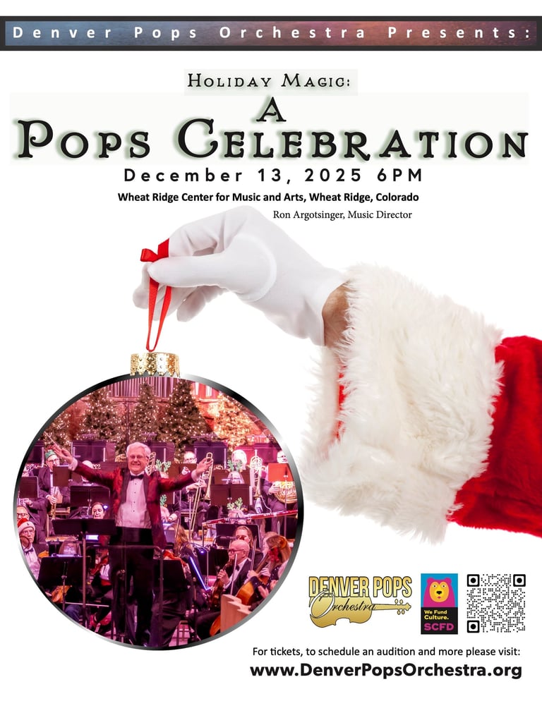 Ring in the holidays with the Denver Pops Orchestra and guest vocalist Amy Maples! Enjoy festive favorites by Leroy Anderson including A Christmas Festival, Sleigh Ride, and Song of the Bells, along with beloved classics White Christmas and The Christmas Song. The program also features Christmas Eve/Sarajevo 12/24, Fantasia on We Three Kings, Groa by Åke Brandt, Festive Sounds of Hanukkah, and a joyful Holiday Sing-Along. A perfect evening of warmth, wonder, and holiday cheer for the whole family!